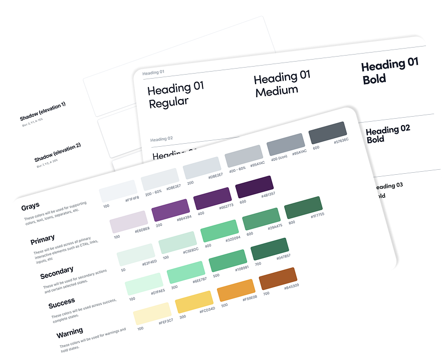 Defines shared visual foundations—color, typography, and elevation—to reinforce hierarchy, readability, and consistency across complex systems.
